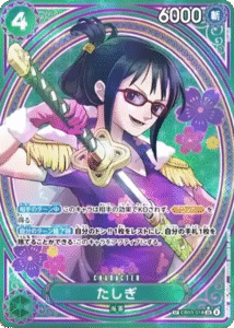 登場時自分の手札からコスト5以下の、特徴《アラバスタ王国》か《麦わらの一味》を持つキャラカード1枚までを、登場させる。その後、自分は、このターン中、自分の場にキャラカードを登場できない。