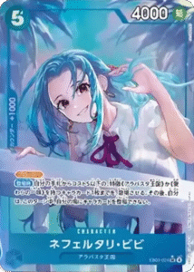 テキスト | 【登場時】相手の「モンキー・D・ルフィ」以外のキャラ1枚までは、次の相手のターン終了時まで、アタックできない。その後、コスト1以下のキャラ1枚までを、持ち主のデッキの下に置く。 |