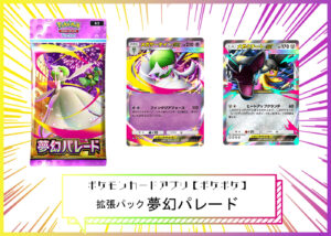 拡張パック「夢幻パレード」では、メガサーナイトex、メガクチートex、オーガポンみどりのめんex、タイレーツ★,ふしぎな広場などのポケモンが収録されています。カントー地方の御三家メガシンカexが目玉となるパックです。